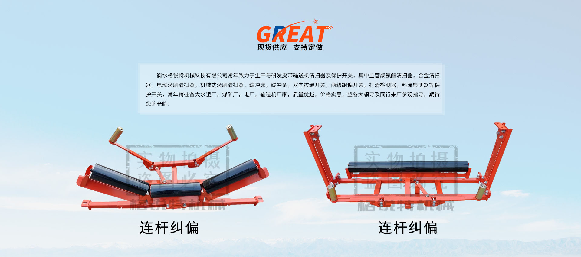 衡水格銳特機械科技有限公司常年致力于生產與研發皮帶輸送機清掃器及保護開關,其中主營聚氨酯清掃器,合金清掃器,電動滾刷清掃器,機械式滾刷清掃器,緩沖床,緩沖條,雙向拉繩開關,兩級跑偏開關,打滑檢測器,料流檢測器等保護開關,常年銷往各大水泥廠,煤礦廠,電廠,輸送機廠家,質量優越,價格實惠,望各大領導及同行來廠參觀指導,期待您的光臨?。。?/p>